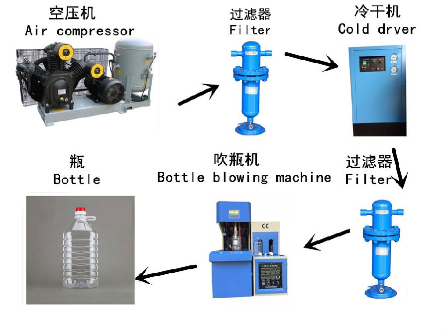 本設(shè)備適用于10毫升至5升以內(nèi)的產(chǎn)品,包含:煙油瓶、化妝品、礦泉水、食用油瓶、農(nóng)藥瓶、太空杯、小廣口瓶、蜂蜜瓶、汽車行業(yè)玻璃水、等產(chǎn)品。適用原料PET、Pete、Petg、PS、PC、PC、tritan、ABS等材料。 吹瓶過程